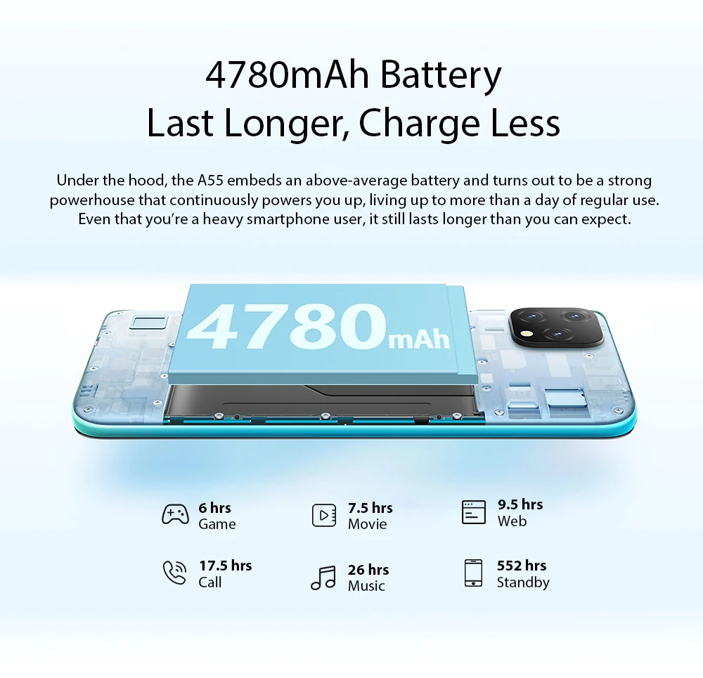 Special Offer Blackview Nowy A55 Smartfon 3GB 16GB 6.528 "HD 4780mAh Czterordzeniowy Android11 Telefon Komórkowy MT6761V 5MP + 8MP Aparat W Telefonie Komórkowym Discount (22%OFF) Today!