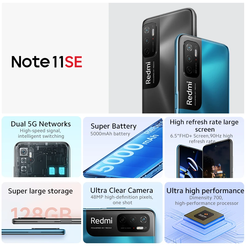 Product Name: Globalny ROM Xiaomi Redmi Note 11SE 5G 11 SE Dimensity 700 Octa Core 5000mAh Bateria 6.5 "90Hz Ekran 48MP Aparat Telefon Komórkowy